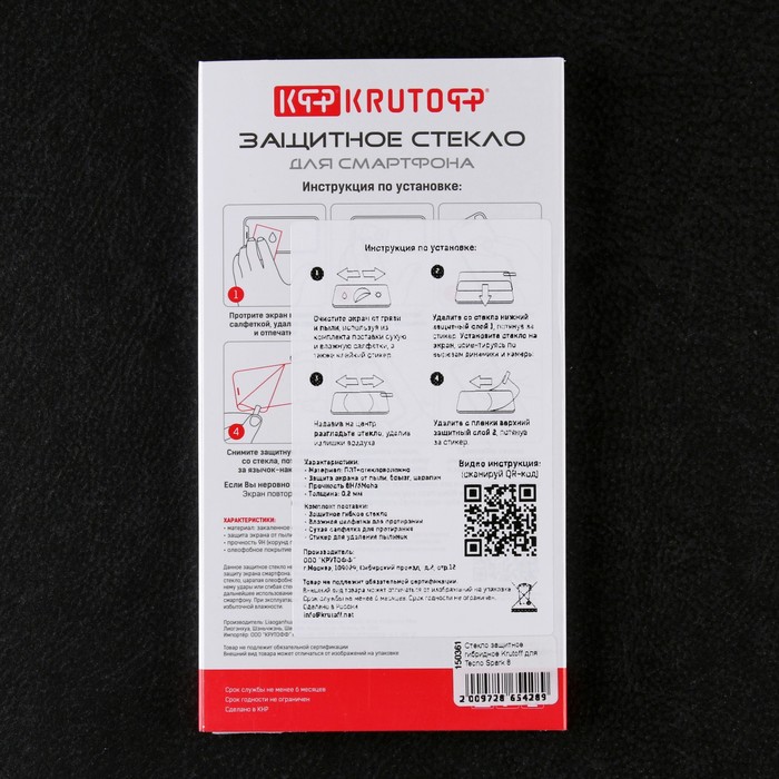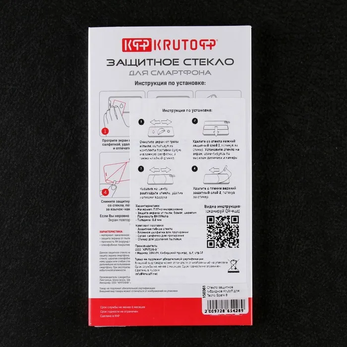 Защитное стекло Krutoff, для Tecno Spark 8, гибридное, полный клей — Характеристики