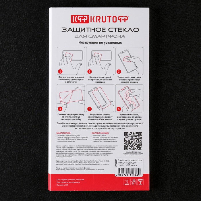Защитное стекло Krutoff для Xiaomi 11/11T, полный клей, черное — Характеристики