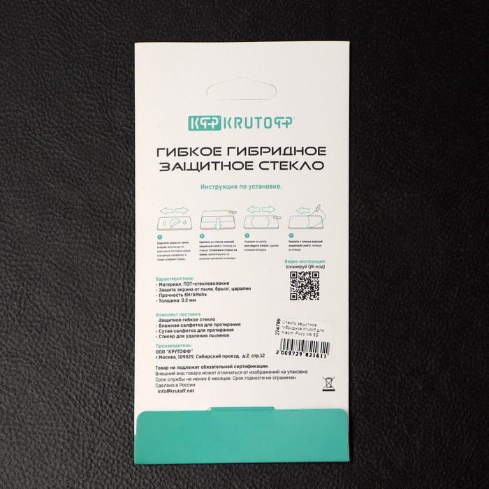 Защитное стекло Krutoff, для Xiaomi Poco M4 5G, гибридное, гибкое, полный клей — Характеристики