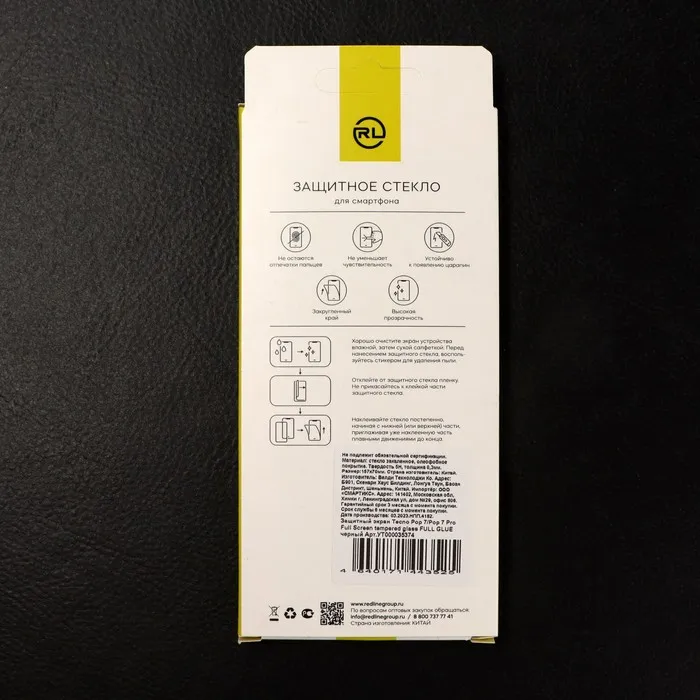 Защитное стекло MB mobility для Tecno Pop 7/Pop 7 Pro, Full Screen, полный клей, черное — Характеристики