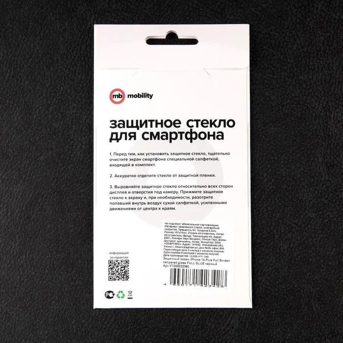 Защитное стекло mObility, для iPhone 14 Plus, полный клей, черное — Характеристики