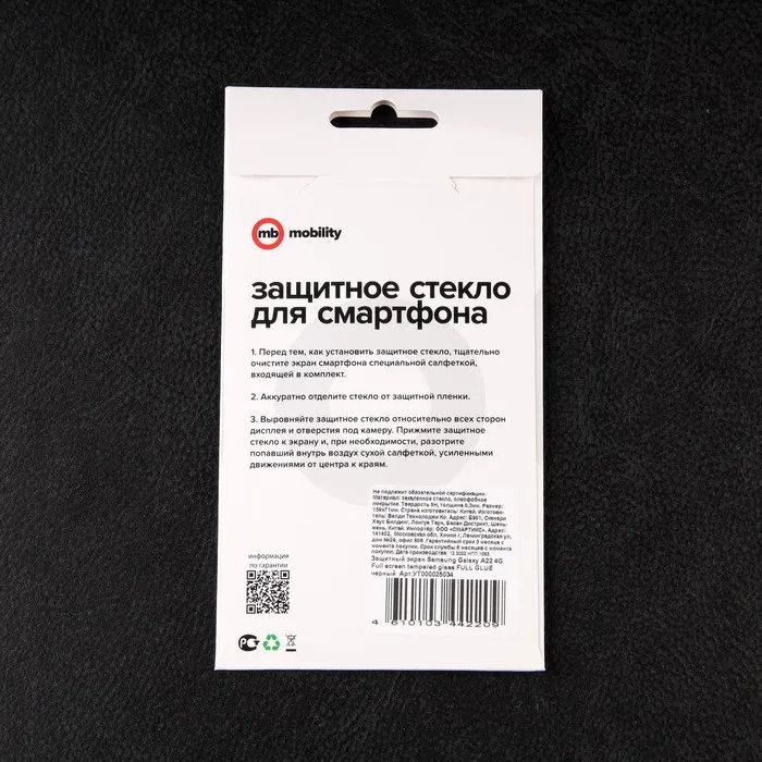Защитное стекло mObility, для Samsung Galaxy A22 4G, полный клей, черное — Характеристики