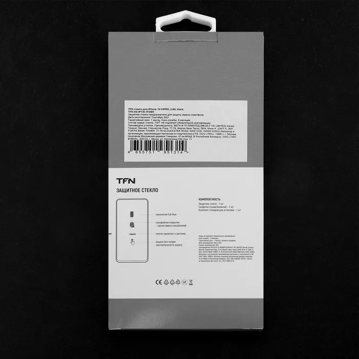 Защитное стекло TFN, для iPhone 13/13 Pro, полный клей, 2.5 D, чёрное — Характеристики