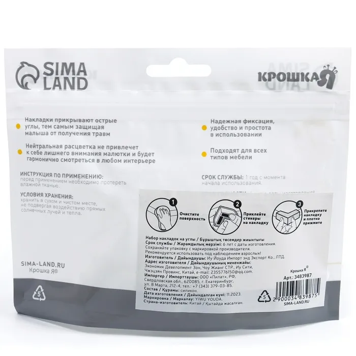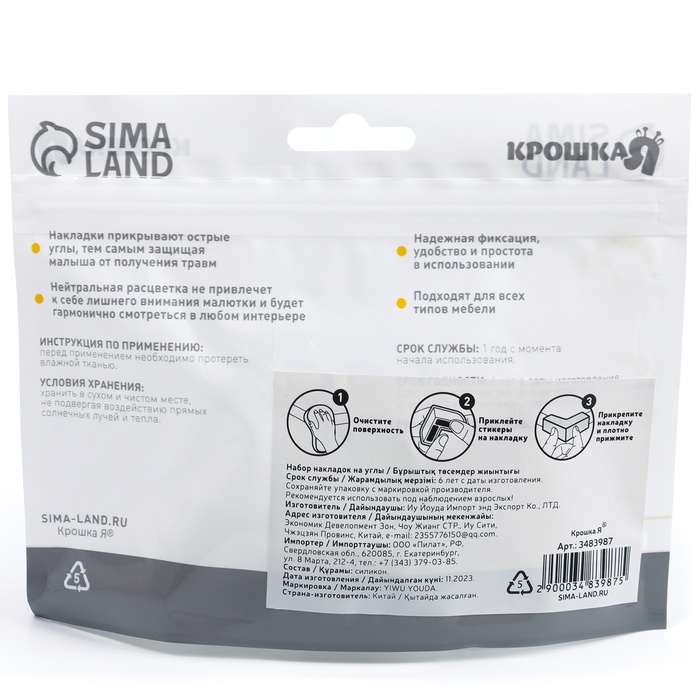Защитные накладки на углы Крошка Я, набор 4 шт., силикон — Характеристики