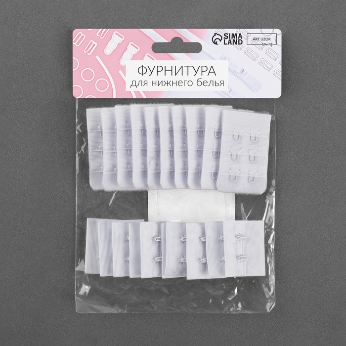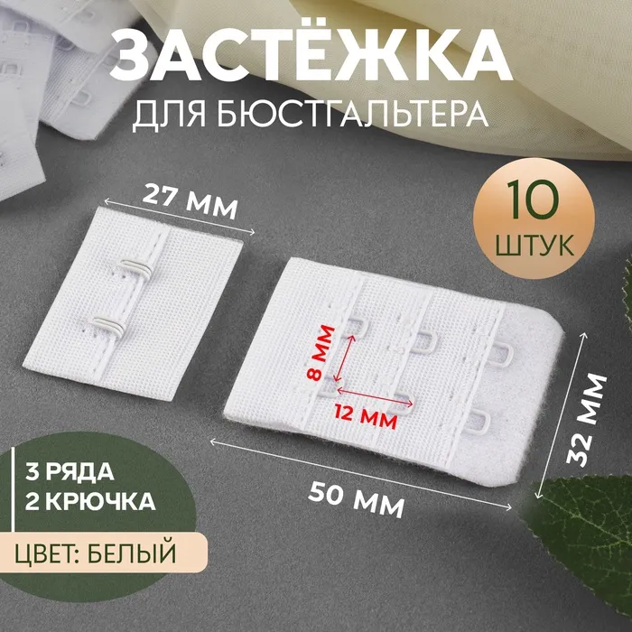 Застёжка для бюстгальтера, 3 ряда 2 крючка, 3.3×2.8 см, 3.3×5 см, 10 шт., белая — Характеристики