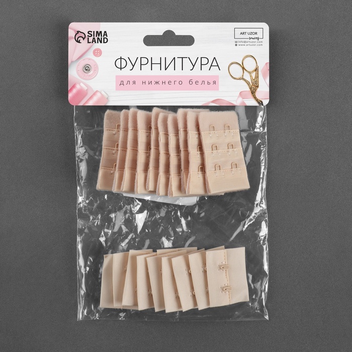 Застёжка для бюстгальтера, 3 ряда 2 крючка, 3.3×2.8 см, 3.3×5 см, 10 шт., бежевая — Характеристики