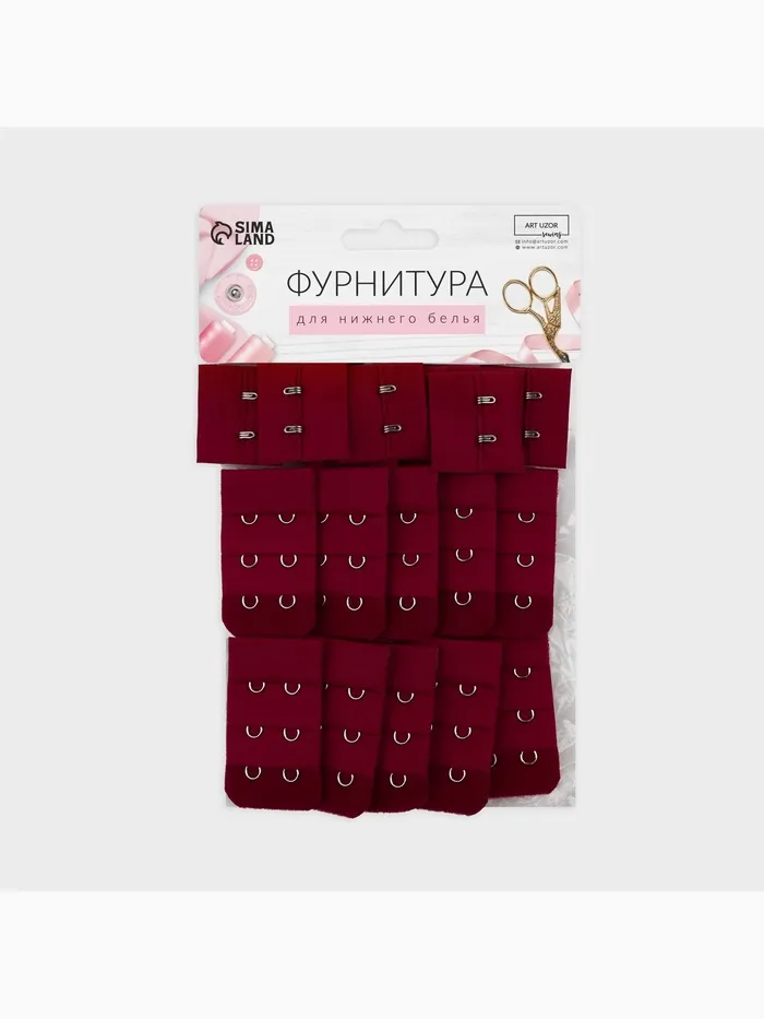 Продлите жизнь любимому бюстгальтеру – трендовые бордовые застёжки для белья из износостойкого полиэстера. Набор из 10 штук с тремя рядами крючков – готовое решение для ремонта и пошива.
