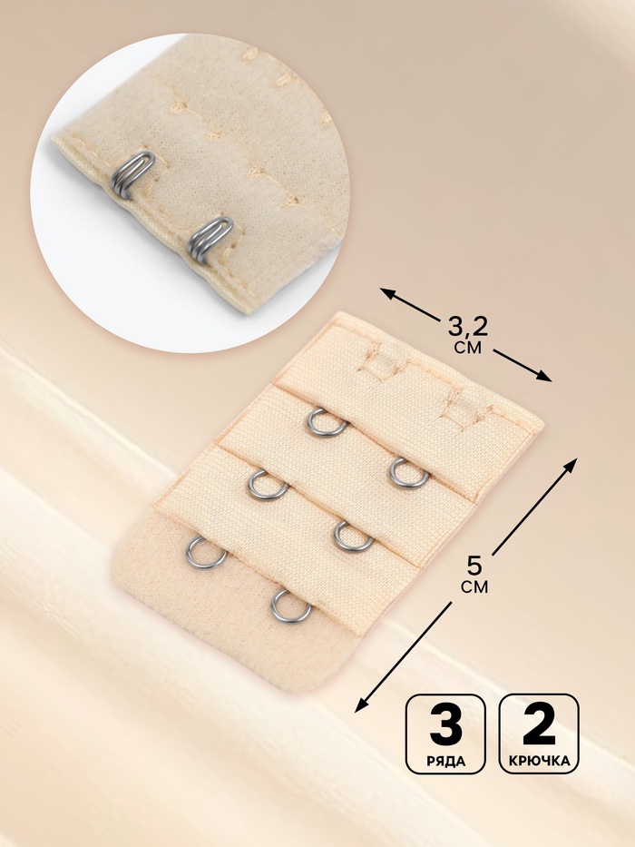 Когда любимый бюстгальтер стал немного тесен, этот аксессуар станет элегантным решением проблемы. Его универсальный бежевый оттенок (3.2×5 см) естественно сливается с кожей, делая удлинитель совершенно незаметным под любой одеждой.