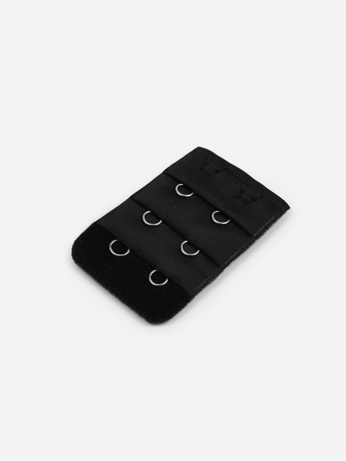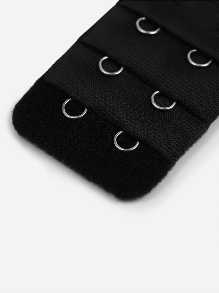 Чёрный цвет удлинителя (3.2×5 см) идеально сочетается с тёмным бельём, оставаясь совершенно незаметным под одеждой. Полиэстеровая основа гарантирует прочность и сохранение формы даже после многочисленных стирок.