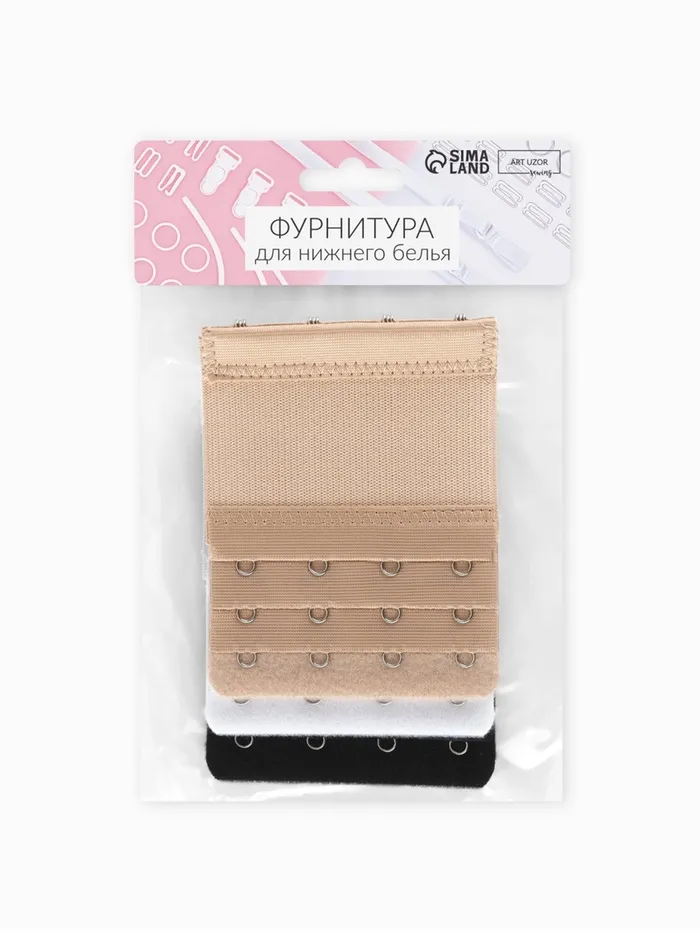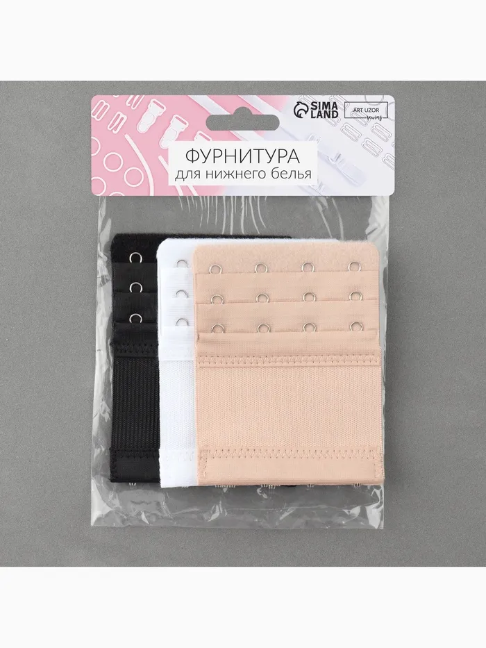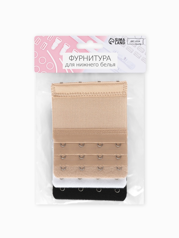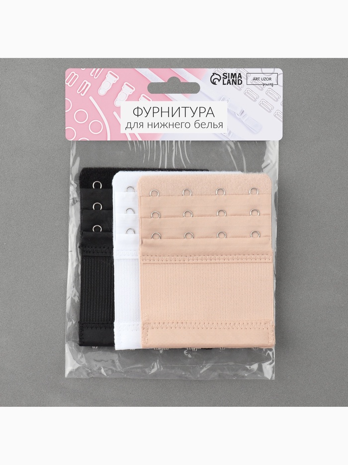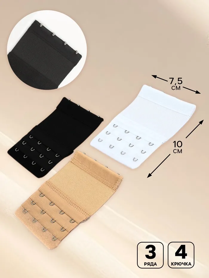 Застёжка для бюстгальтера, удлинитель, 3 ряда, 4 крючка, 7.5×10 см, 3 шт. — Характеристики