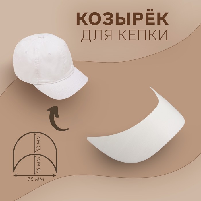 Козырёк для кепки, гнутый, 7×17.5×6 см, белый, цена за 1 штуку