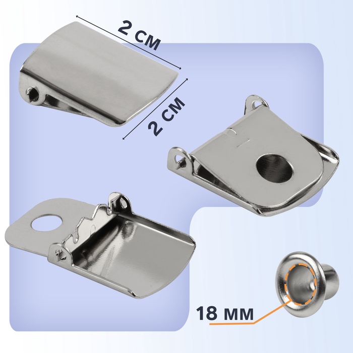 Застёжка для кепки, с люверсом, 2×2 см, цвет серебряный — Характеристики