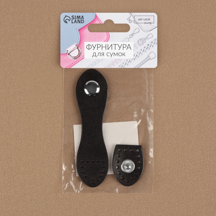 Застёжка для сумки, пришивная, на кнопке, 9.2×2.5 см, цвет чёрный, серебряный — Характеристики