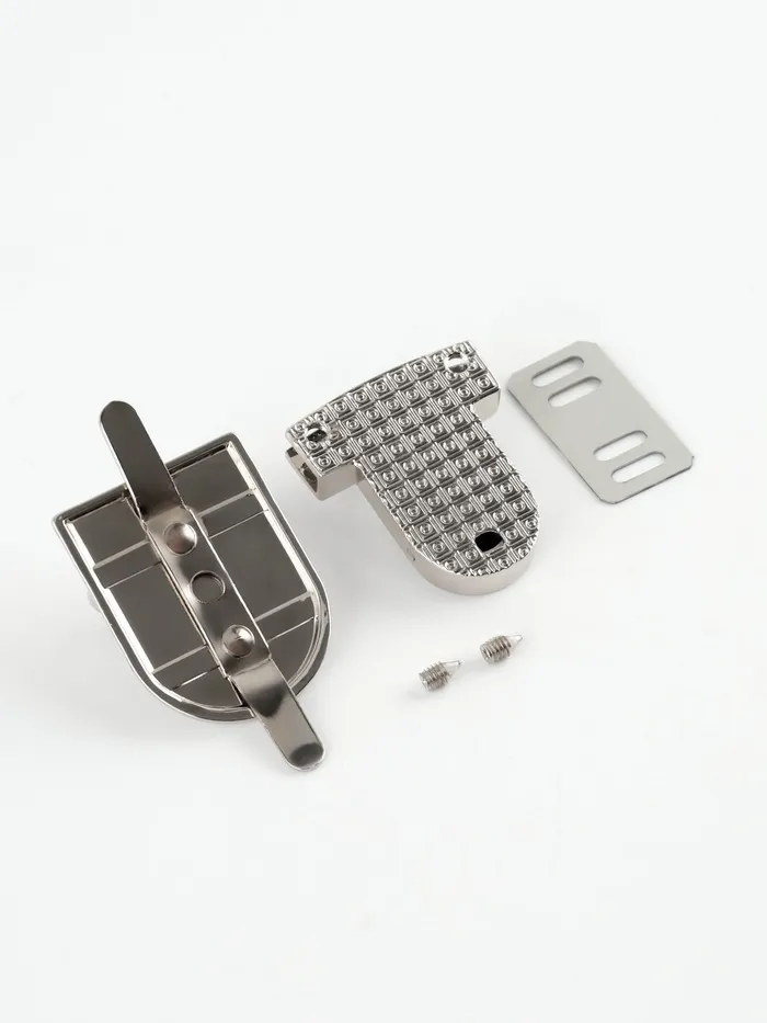 Металлическая застёжка для сумки в серебристом цвете помогает вернуть аксессуару аккуратный внешний вид и удобство использования. Её выбирают для ремонта, замены изношенных деталей или самостоятельного пошива изделий. Благодаря лаконичному дизайну застёжка органично смотрится как на классических, так и на современных моделях.