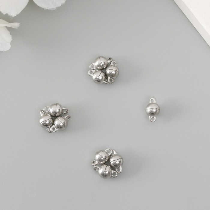Застёжка магнитная металл «Шарик», серебро, 0.6×1.1×0.6 см, (набор 2 половинки)