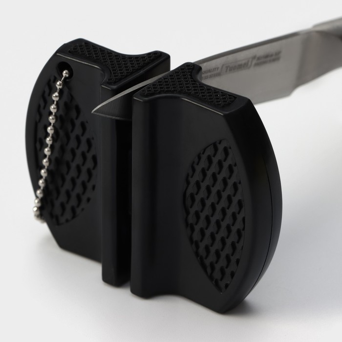 Заточка для ножей Доляна, 7.5×6×2.5 см, с 2 отделениями для стальных и керамических ножей, МИКС — Характеристики