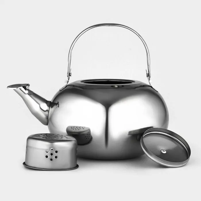 Чайник «Арес» — это стильный и функциональный аксессуар для вашей кухни. Он изготовлен из высококачественной нержавеющей стали, которая обеспечивает долгий срок службы и сохранение вкуса напитков. Ситечко, которое идёт в комплекте, позволяет заваривать чай прямо в чайнике, не используя дополнительные приспособления. Эргономичная ручка обеспечивает удобство при наливании кипятка, а плотно закрывающаяся крышка предотвращает потерю тепла и сохраняет аромат напитка.