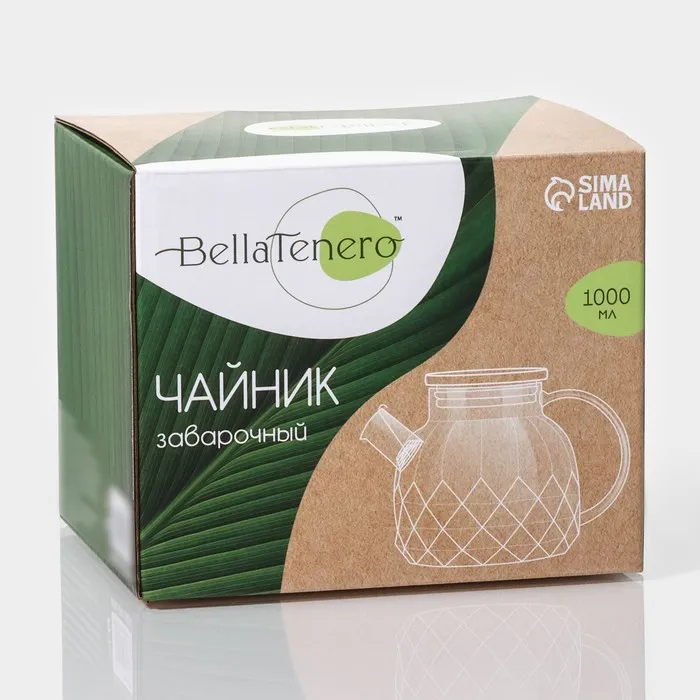 Заварочный чайник BellaTenero «Круиз», 1 л, 16×10×12 см, бамбуковая крышка, металлический фильтр, стекло — Характеристики