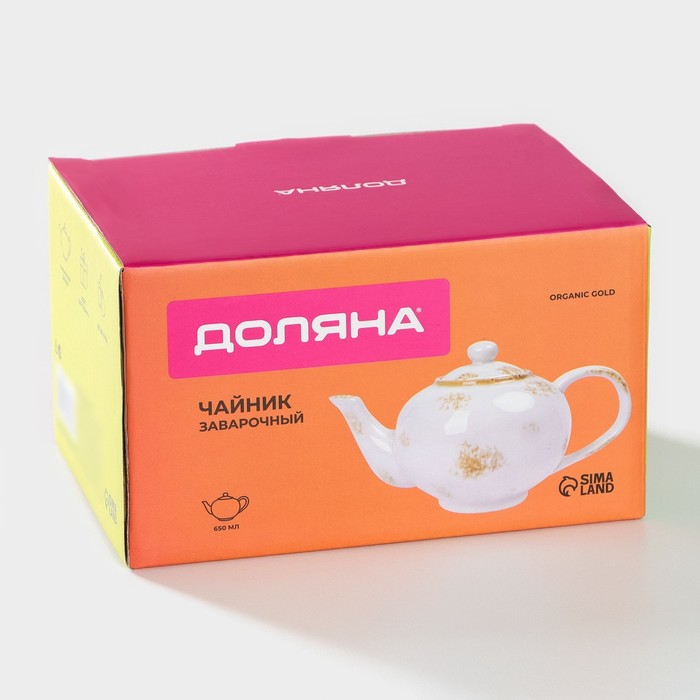 Заварочный чайник Доляна Organic Gold, 650 мл, фарфор, белый — Характеристики