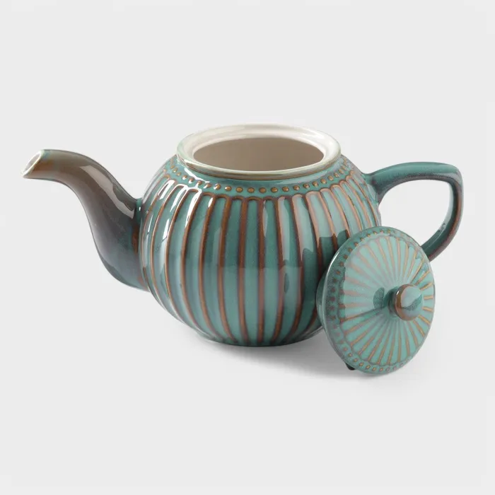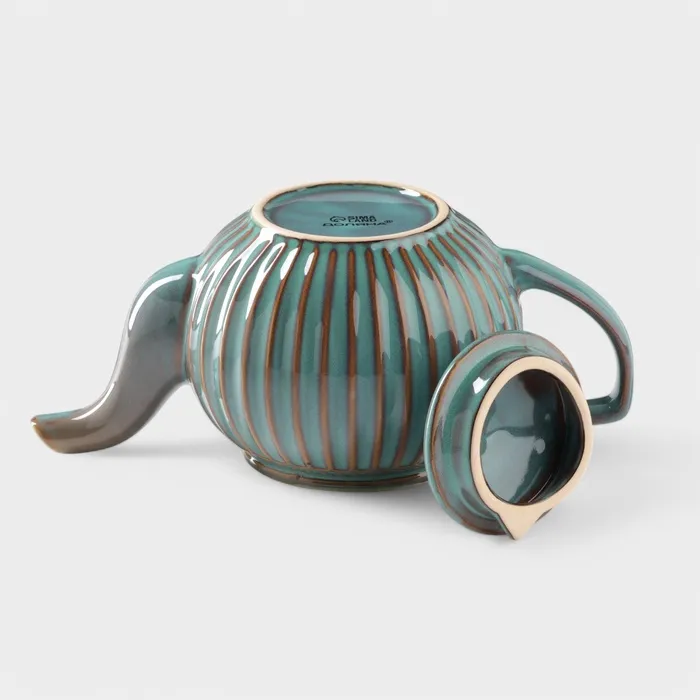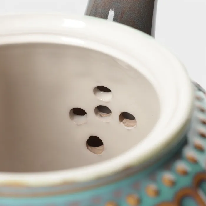 Изготовленный из качественной керамики, этот чайник отличается прочностью и долговечностью. Синий цвет и рельефная текстура придают ему особый шарм, а наличие фильтра делает процесс заваривания удобным и эффективным. Чайник оснащён керамической крышкой, что сохраняет тепло и аромат чая.