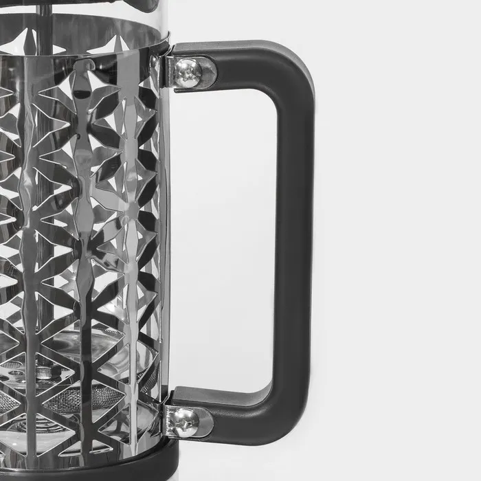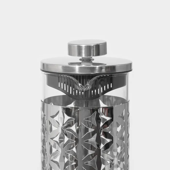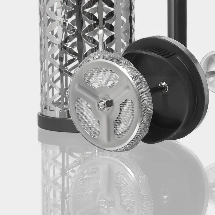 Стеклянный френч-пресс хорошо держит тепло, раскрывает вкус любимых напитков. Материал не вступает в реакцию с жидкостью, не не впитывает запахи и не окисляется. Металлический поршень и рельефный каркас из нержавеющей стали обеспечивают прочность изделия.Принцип работы френч-пресса прост: