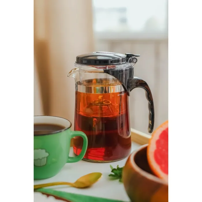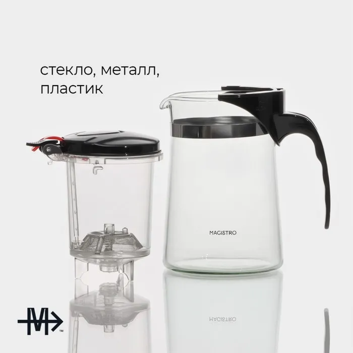 Заварочный стеклянный чайник Magistro «Мантана» объёмом 500 мл — идеальный выбор для тех, кто ценит качество и эстетику. Благодаря удобному пластиковому фильтру вы сможете контролировать крепость заварки и наслаждаться чистым настоем. Этот элегантный и функциональный чайник станет ярким акцентом на вашей кухне и позволит вам наслаждаться каждым глотком любимого напитка.