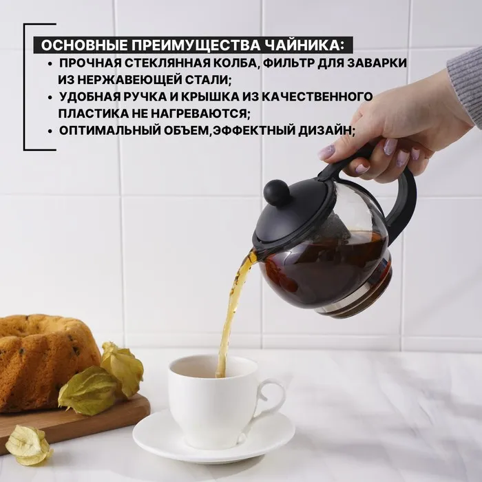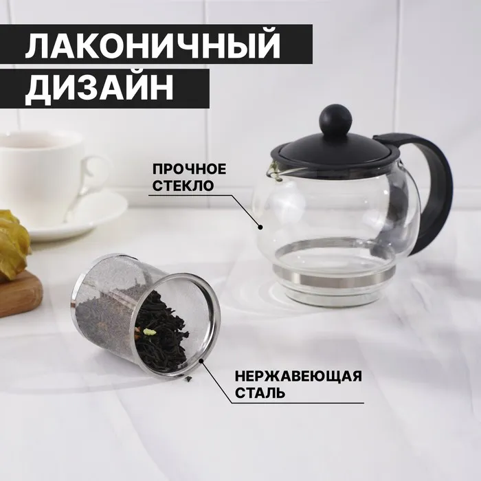 Заварочный чайник «Вдохновение», 500 мл, с металлическим ситом, стекло, чёрный — Характеристики