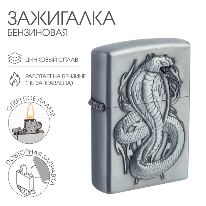Этот аксессуар отлично подойдет как для зажигания сигарет, так и для свечей, что делает его универсальным подарком для себя или близких. Благодаря использованию бензина в качестве топлива, зажигалка гарантирует быстрое и надежное воспламенение сигарет, даже в самых сложных условиях. Ее кремниевый механизм поджига работает даже при сильном морозе или ветре, что делает ее идеальным выбором для походов, рыбалки или просто для повседневного использования. Небольшой размер делает зажигалку удобной для кармана, а стильное исполнение c гравировкой в виде кобры - символа 2025 года, делает зажигалку прекрасным подарком папе, парню, мужу, другу или брату на Новый год.