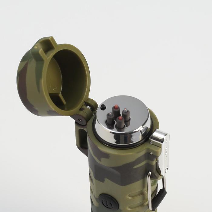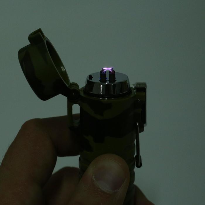 Зажигалка электронная для курения двухдуговая, влагозащита, с фонариком