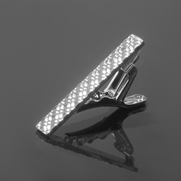 Зажим для галстука медный «Ромбы» классические, цвет серебро