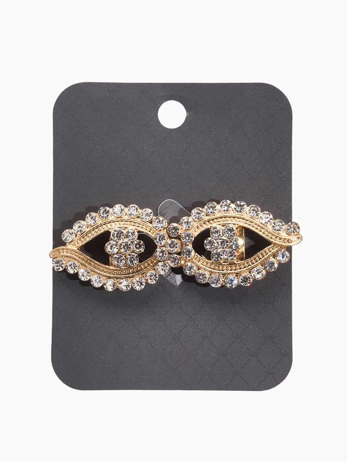 Добавьте магии в свой образ с маленьким, но выразительным зажимом в виде любопытных глазок. Наш аксессуар длиной всего 3,5 см оформлен в ярко-белом цвете с золотистыми акцентами, создавая сказочное настроение и привлекая внимание окружающих. Грамотно подобранные стразы формируют виртуальный каркас рисунка, подчёркивающий красоту и умиротворённость.