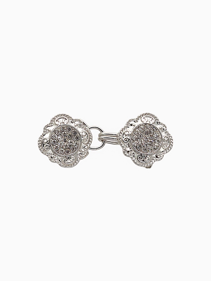 Элегантный зажим для кардигана с ажурным дизайном — это практичный аксессуар, который помогает держать одежду аккуратно и придает образу изысканный штрих. Выполненный из металла с вставками из страз, он сочетает в себе функциональность и стиль, делая любой наряд более завершенным. Белый цвет с серебряным покрытием создает нежный и утонченный внешний вид, подходящий для особых случаев и повседневной носки.