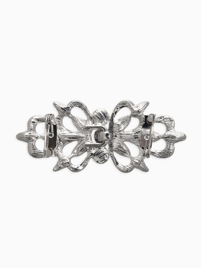 - Элегантный зажим с цветочным мотивом в серебристых оттенках создаст особое настроение в образе;