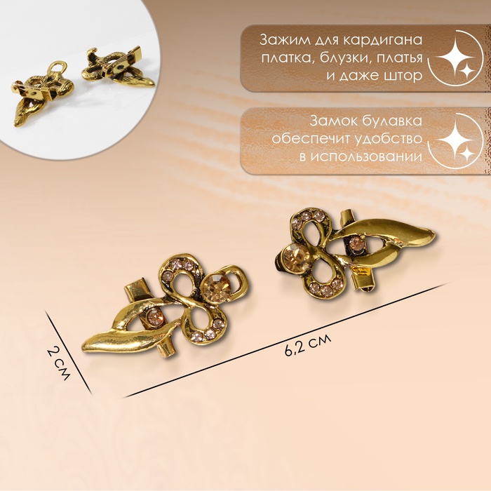 Зажим для кардигана - изысканный аксессуар, в том числе на поверхности платья, шали или свитера, данный элемент можно использовать даже для штор. Зажимы актуальны как в повседневном так и праздничном образе, добавляют очарования вашей одежде при сочетании различных нарядов.