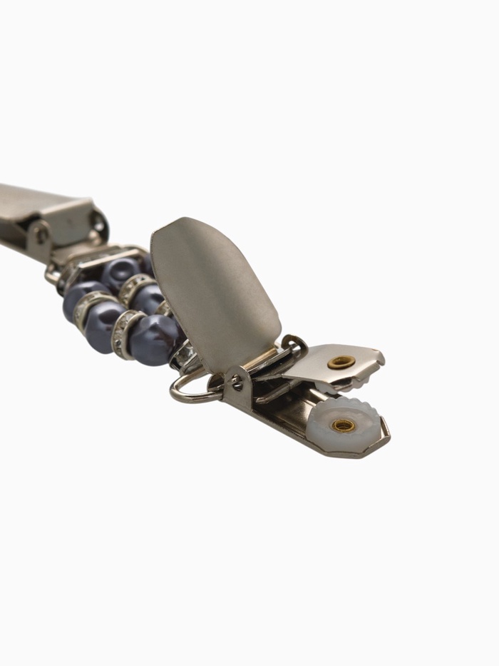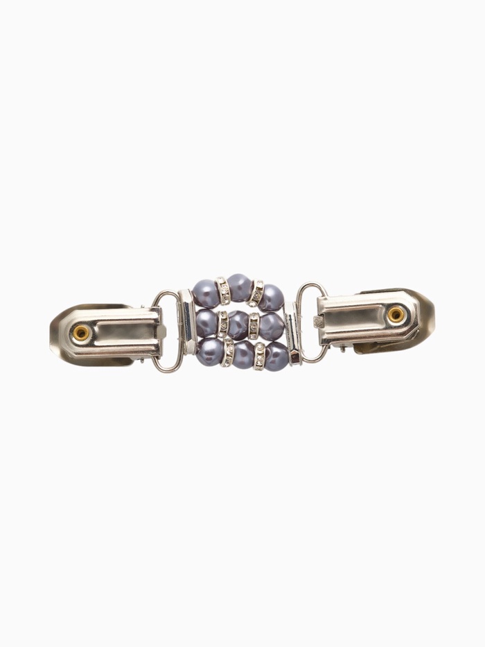 Элегантный зажим для кардигана с бело-серым оттенком и серебряной фурнитурой — это практичный аксессуар, который помогает аккуратно закрепить одежду и придает образу изысканность. Выполненный из металла с коллекции «Гематит», он украшен вставками из страз и пластика, что создает гармоничное сочетание прочности и красоты. Длина 10,5 см обеспечивает надежную фиксацию кардиганов, блузок или топов, делая образ завершенным и аккуратным.