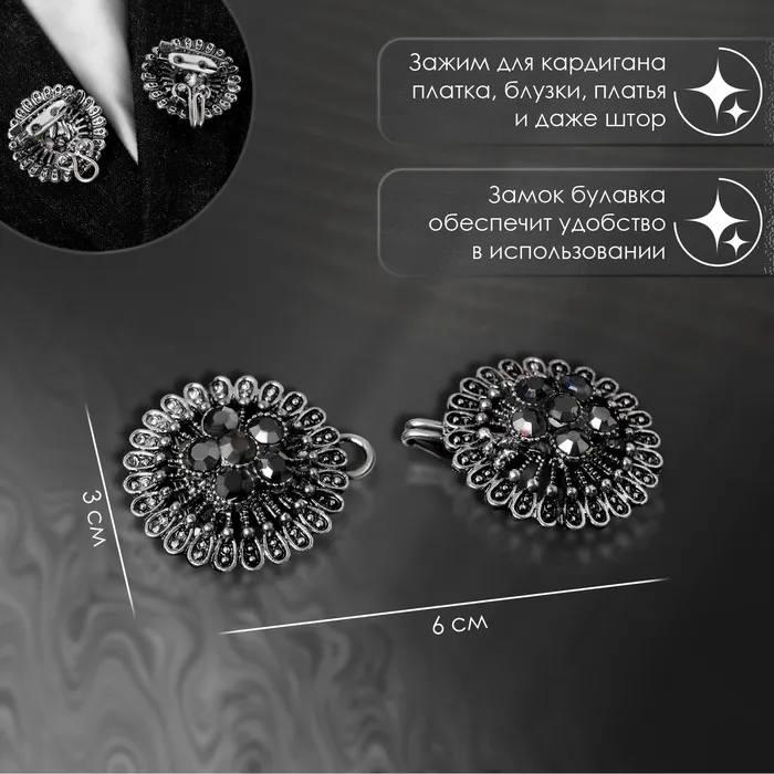 Зажим для кардигана - изысканный аксессуар, в том числе на поверхности платья, шали или свитера, данный элемент можно использовать даже для штор. Зажимы актуальны как в повседневном так и праздничном образе, добавляют очарования вашей одежде при сочетании различных нарядов.