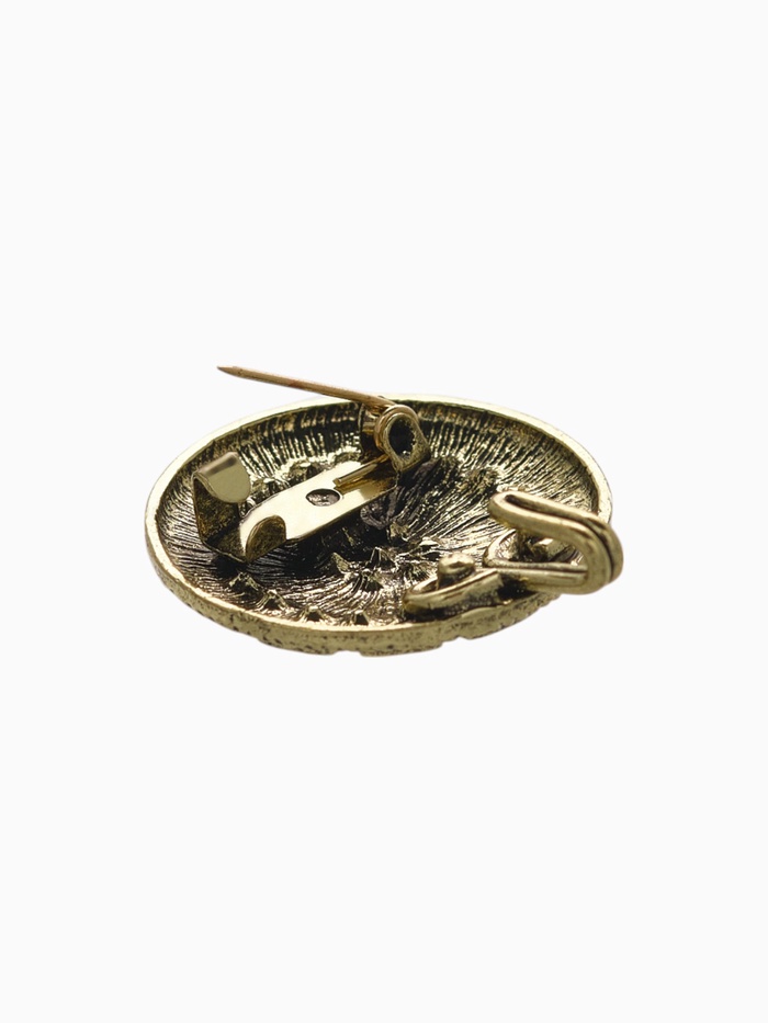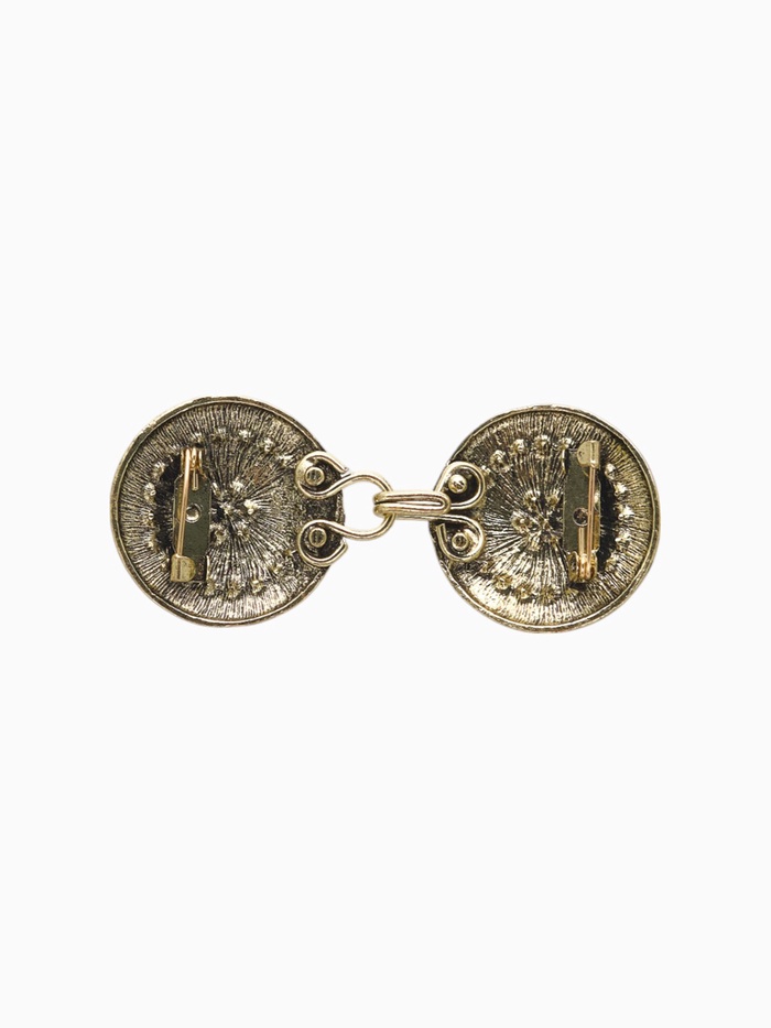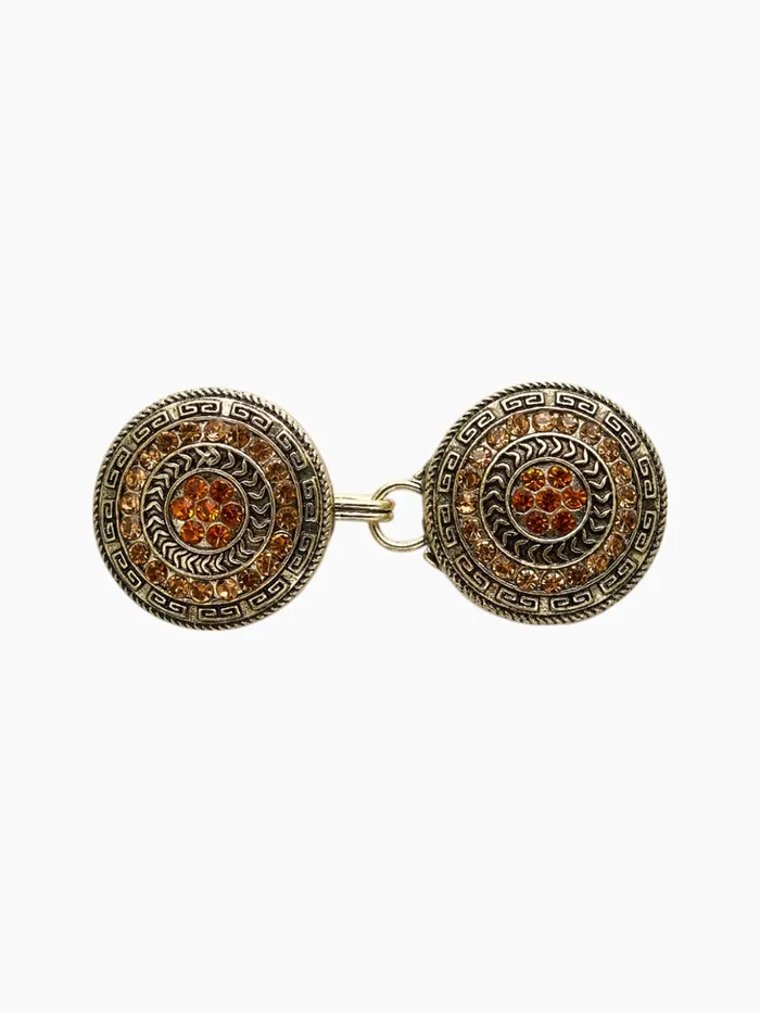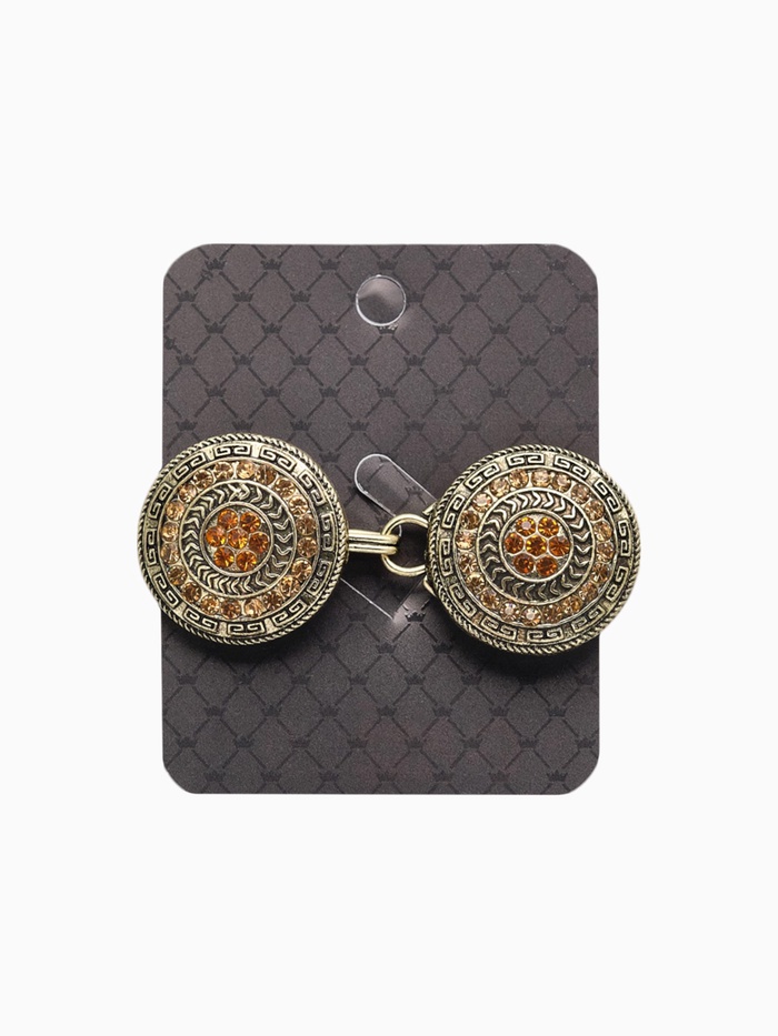 Элегантный зажим для кардигана с классическим дизайном и орнаментами в коричневом цвете с чернённым золотом — это практичный аксессуар, который помогает аккуратно закрепить одежду и подчеркнуть индивидуальный стиль. Выполненный из металла, он украшен вставками из страз и обладает длиной 2,7 см, что обеспечивает надежную фиксацию различных видов женской одежды. Такой зажим станет универсальным дополнением гардероба для повседневных образов и особых случаев.
