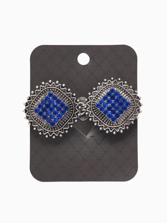 Зажим для кардигана «Квадраты», цвет синий в чернёном серебре