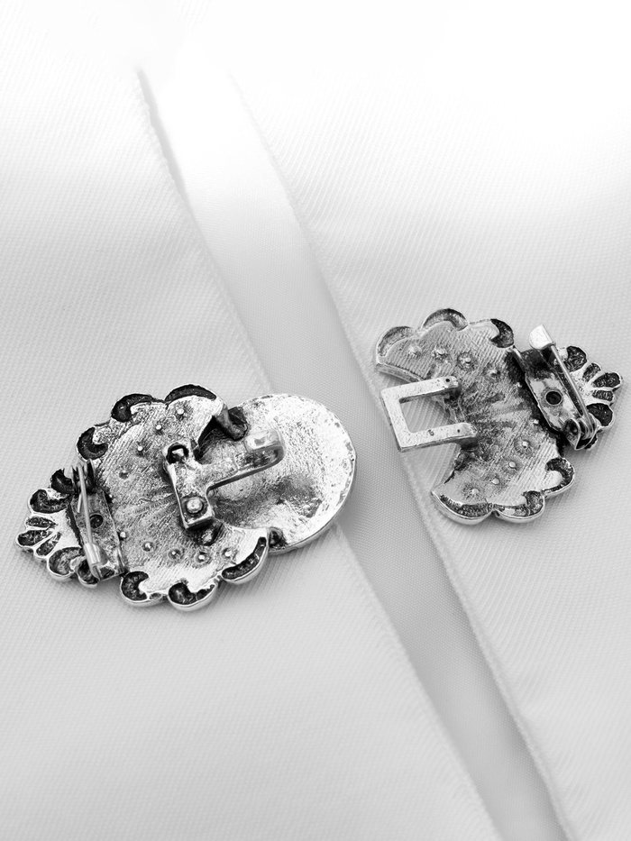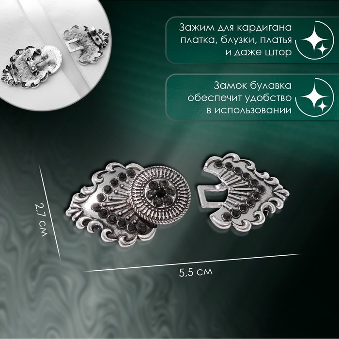 Зажим для кардигана «Лепнина», цвет чёрный в чернёном серебре — Характеристики