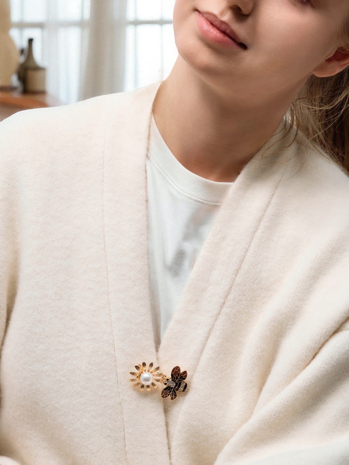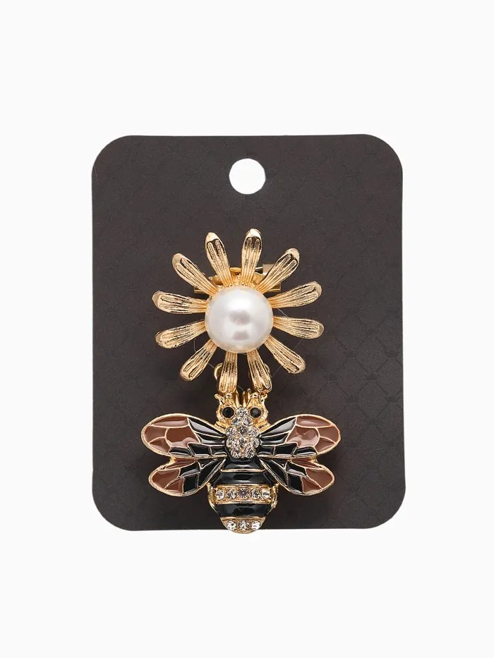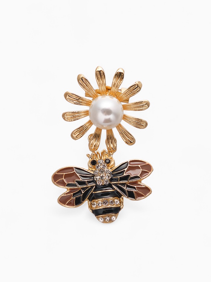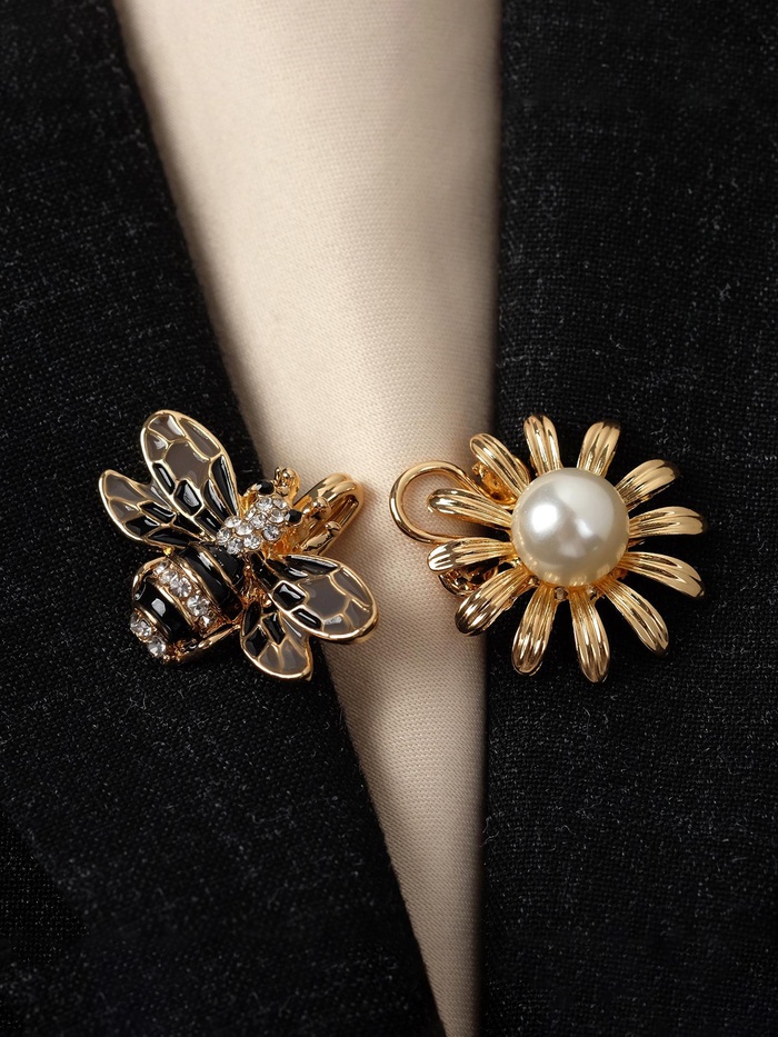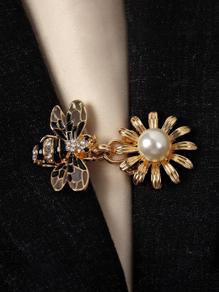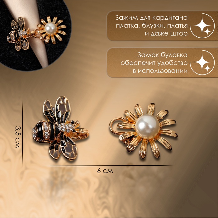 Зажим для кардигана «Пчела», цвет чёрно-белый в золоте — Характеристики