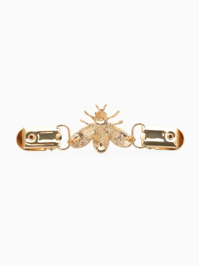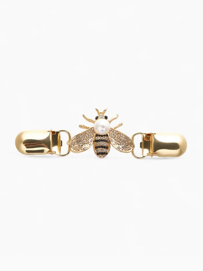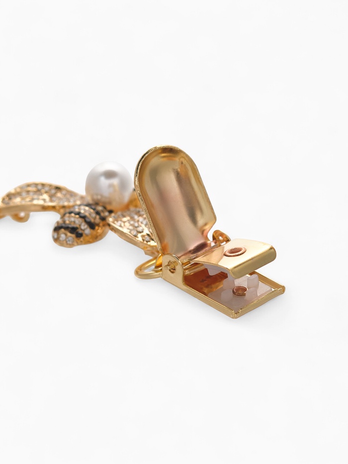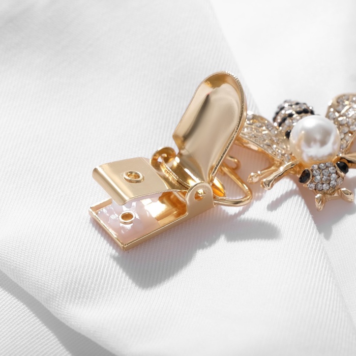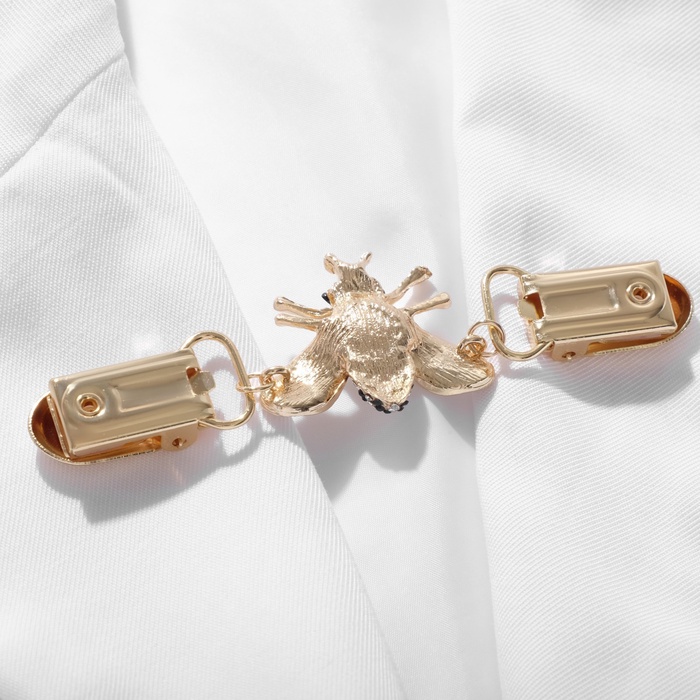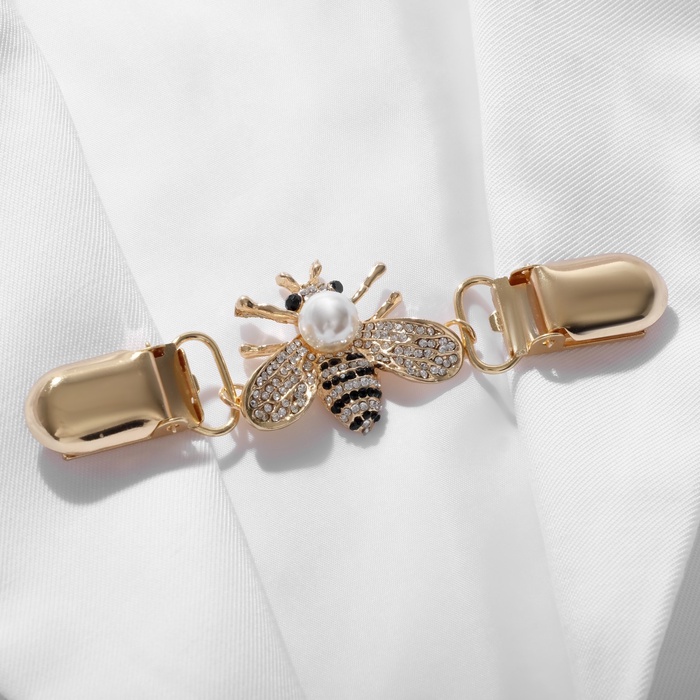 Зажим для кардигана «Шмель», цвет чёрно-белый в золоте — Характеристики