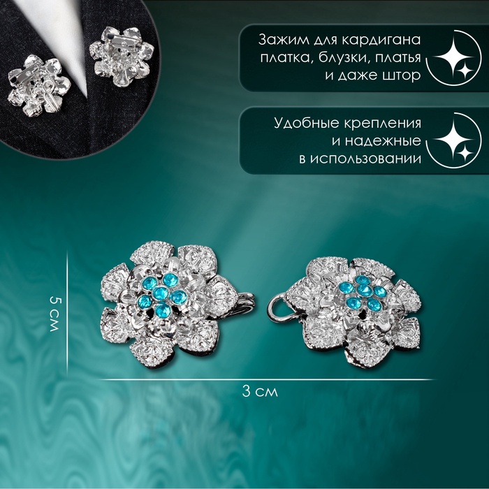 Зажим для кардигана «Цветок», цвет голубой в серебре — Характеристики