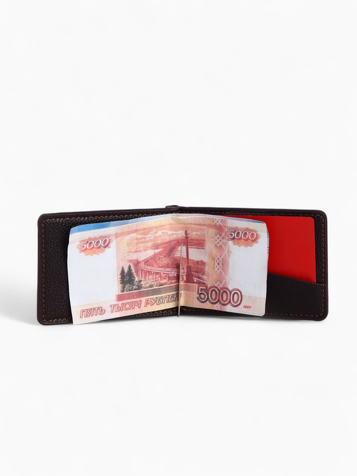 Зажим для купюр на магните, отдел для карт, цвет коричневый — Характеристики
