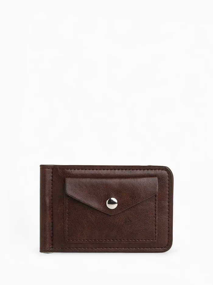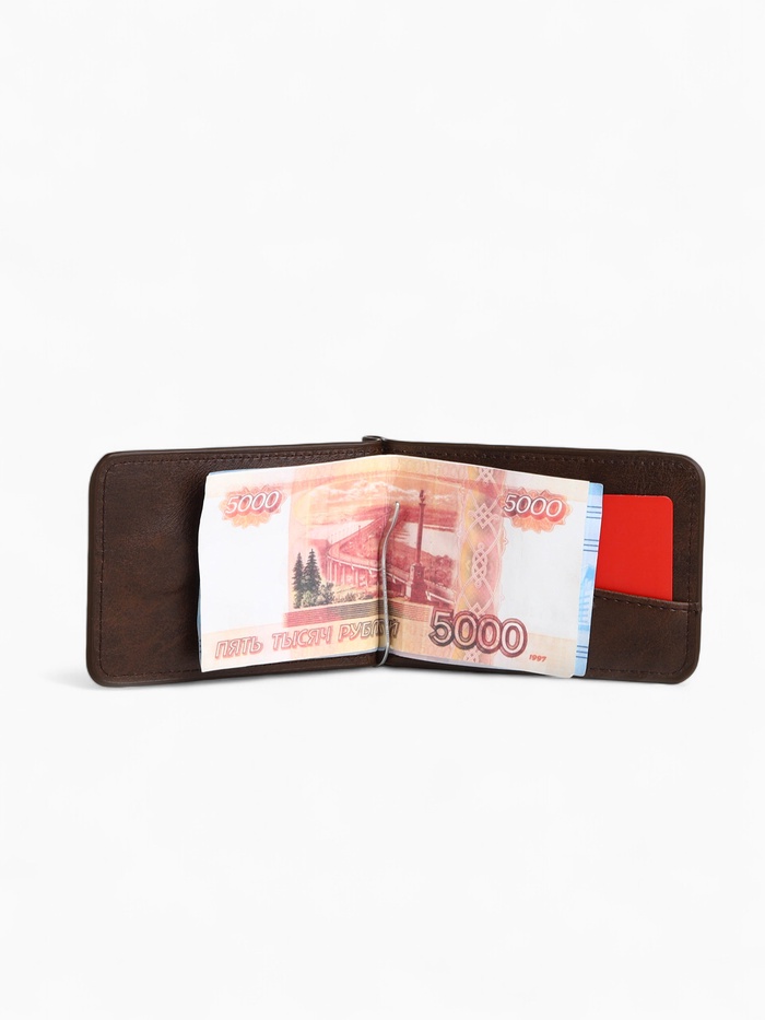 Зажим для купюр, отдел для карт, монет, цвет коричневый — Характеристики