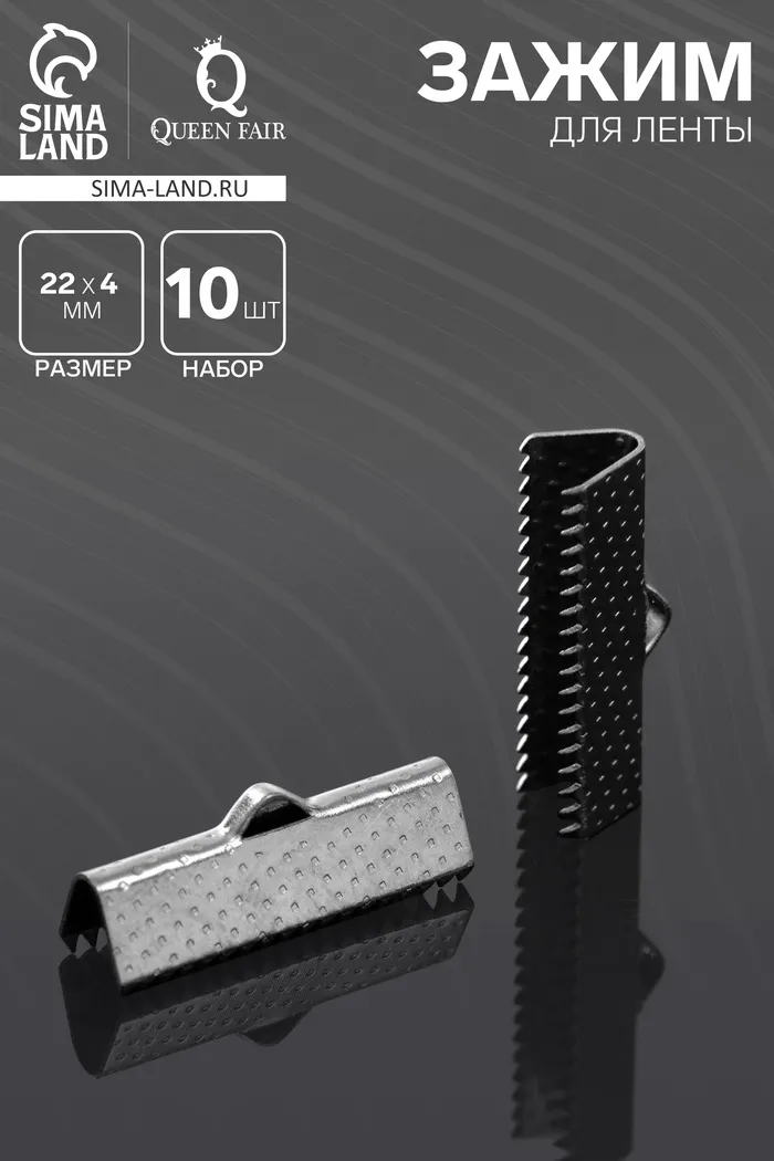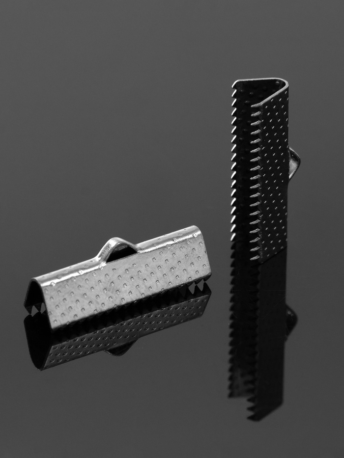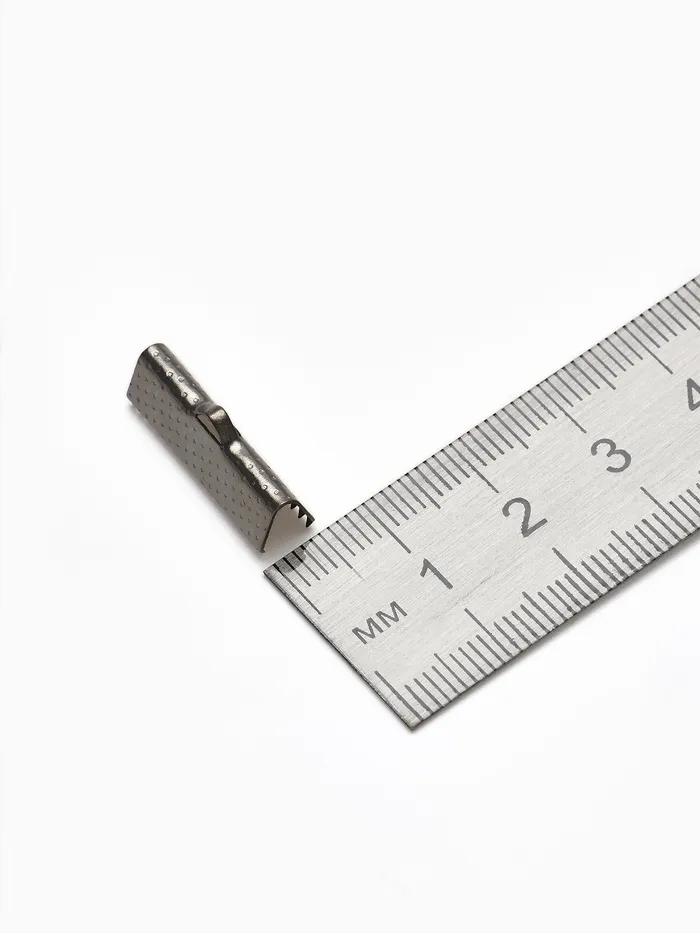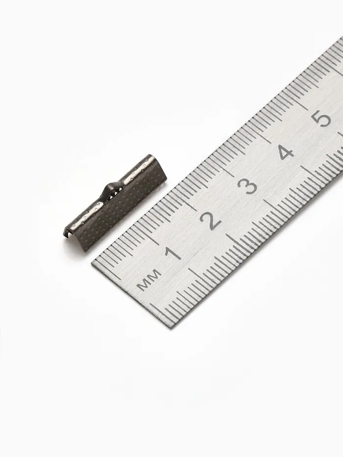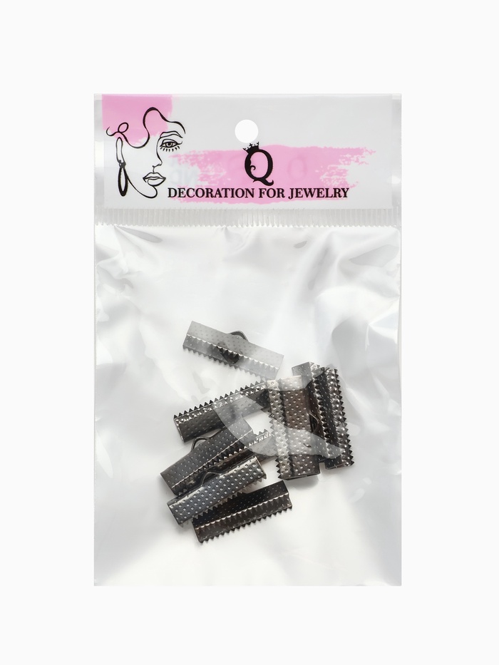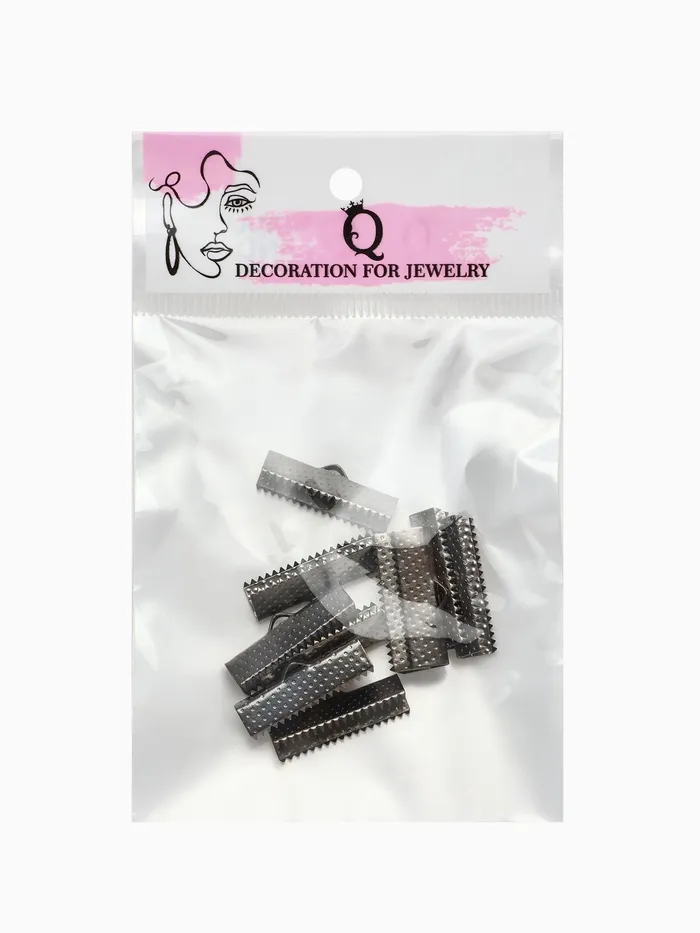 Зажим для ленты (набор 10 шт.) предназначен для завершения плоских украшений, таких как чокеры, браслеты и другие аксессуары. Обратная сторона зажима оснащена прочной крепежной петлей, что позволяет надежно фиксировать его.