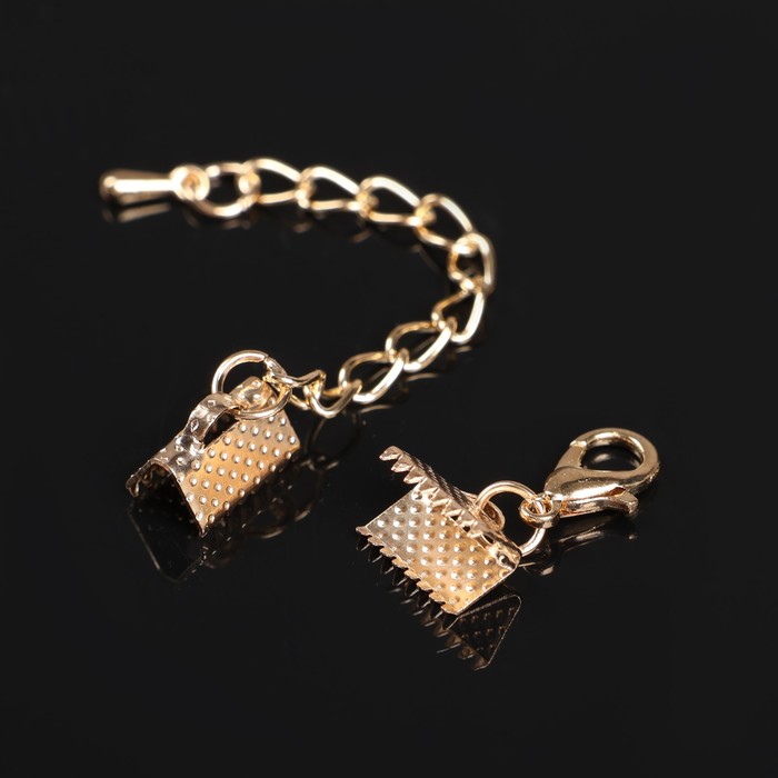 Зажим для ленты (пара) 10 мм, с цепочкой удлинителем, цвет золото