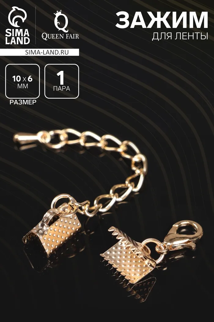 Зажим для ленты (пара) 10 мм, с цепочкой удлинителем, цвет золото — Характеристики