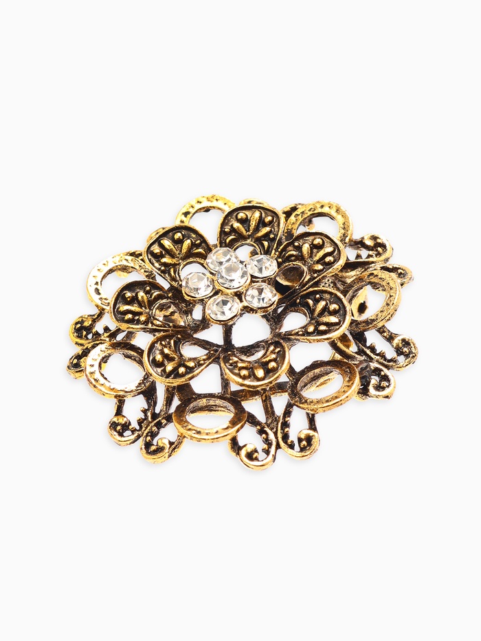 - Винтажный стиль: характерная обработка металла чернением и украшение белыми стразами придают изделию оттенок старину и особую эстетику, создавая эффект достояния семьи.