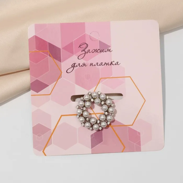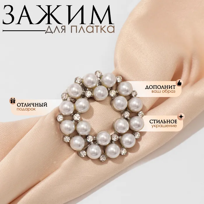 Зажим для платка «Жемчужинка», белый в серебре — Характеристики