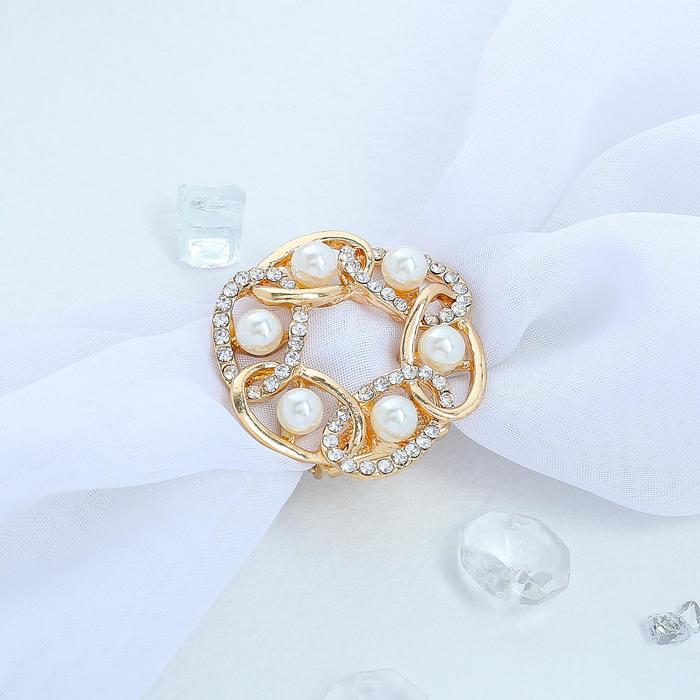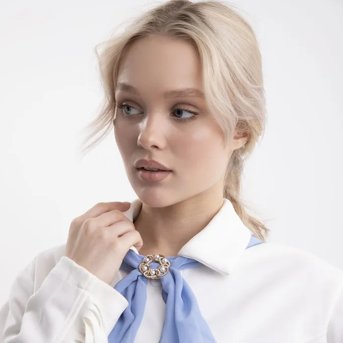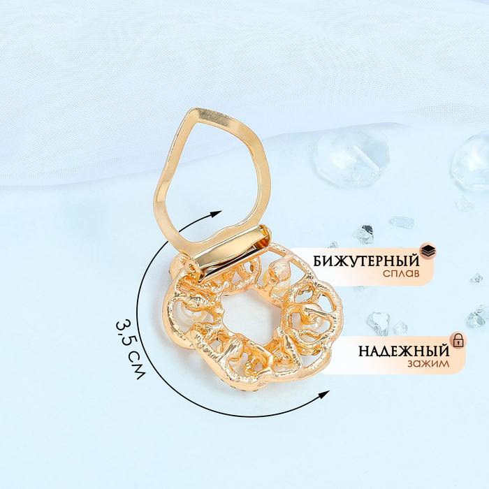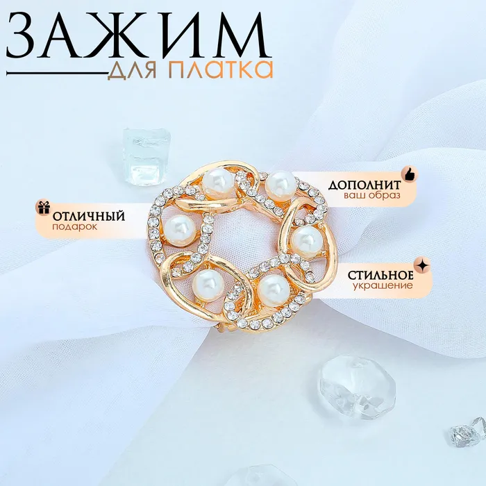Зажим для платка «Звенья» с жемчужиной, цвет белый в золоте — Характеристики
